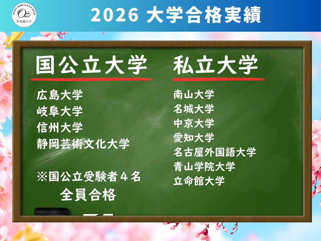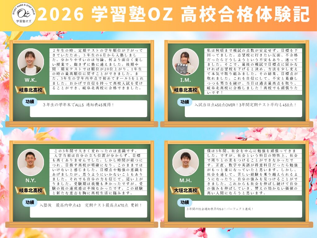 岐阜県瑞穂市での指導歴が1年間空きましたが、4月より再び地域1番塾になるべく”学習塾OZ”をたち上げます。