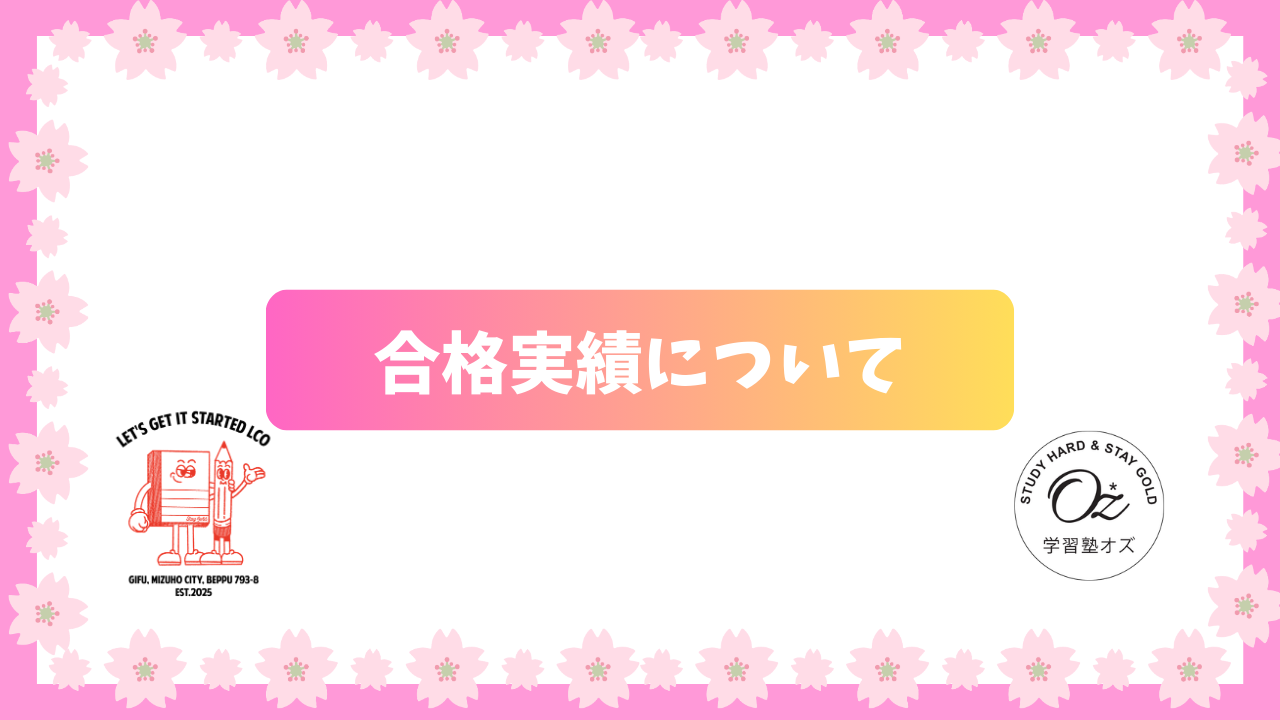 第1期生が受験を終え、合格発表がありました。 岐阜県公立高校入試について学習塾OZの合格実績速報です! 岐阜 2名 岐阜北 3名 加納 5名 岐山 3名 長良 5名 大垣北 2名 大垣東 2名 各務原西 7名 岐阜上位校 2... -