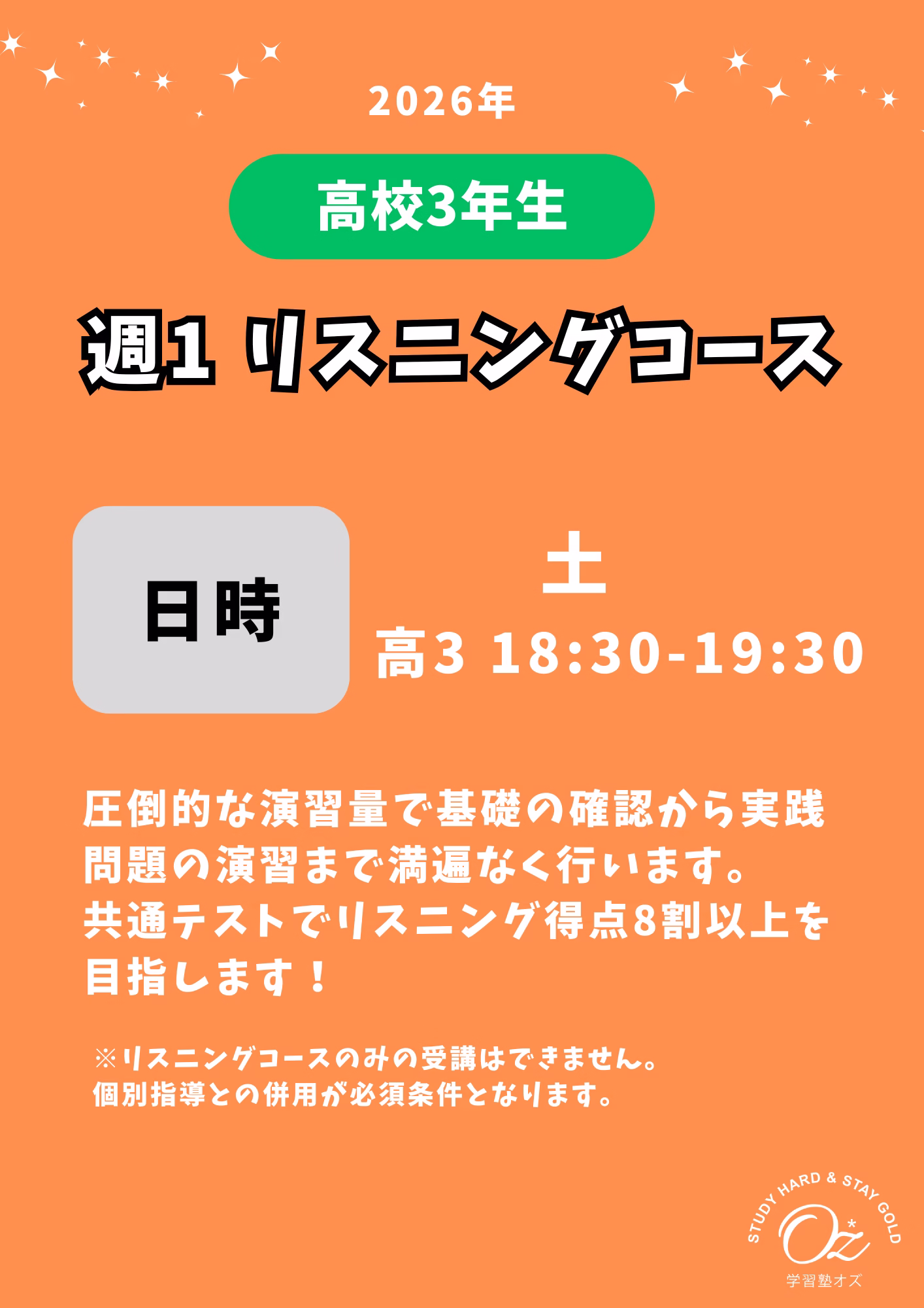 ※リスニングコースのみの受講はできません。(個別指導との併用が必須となります。)