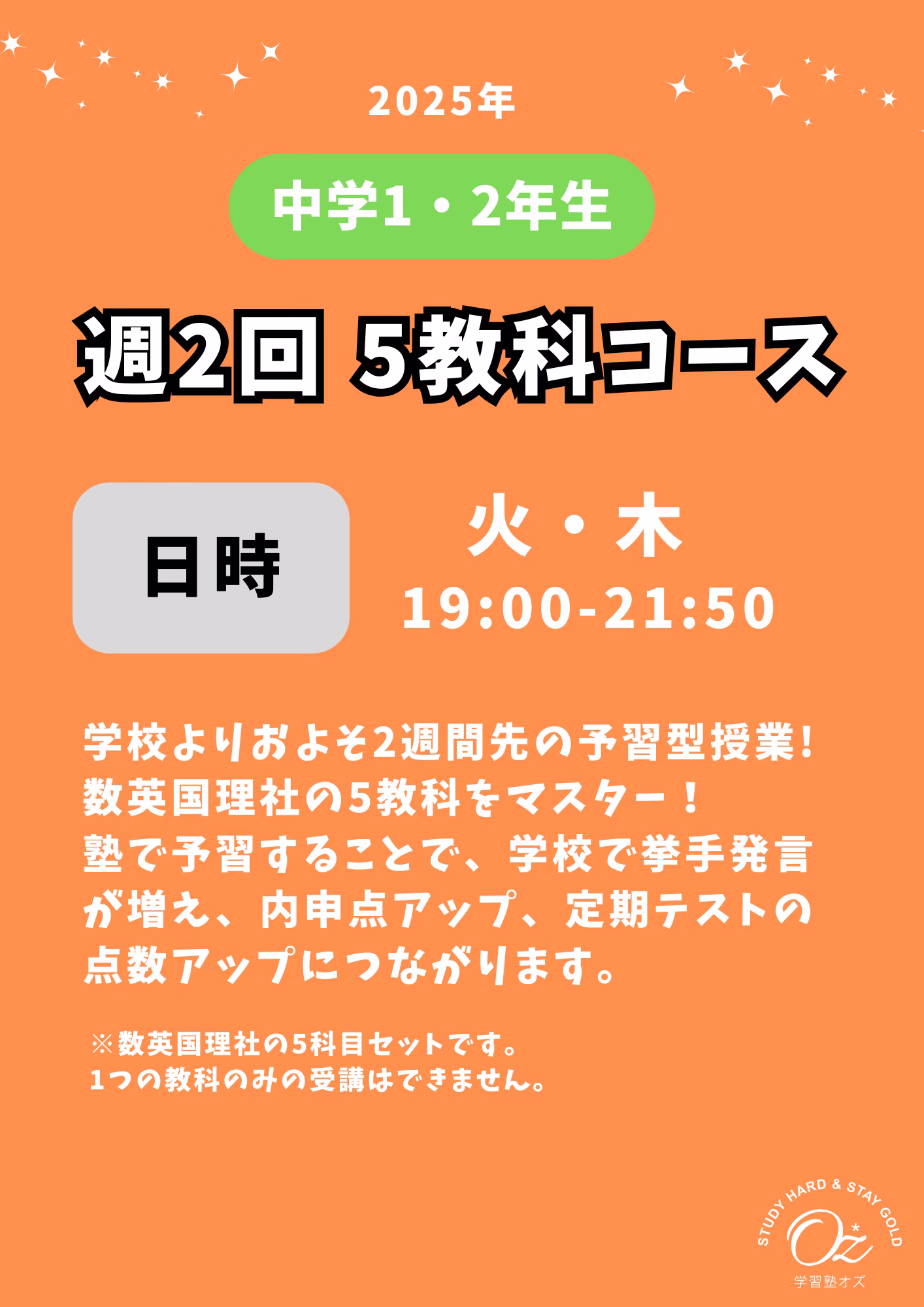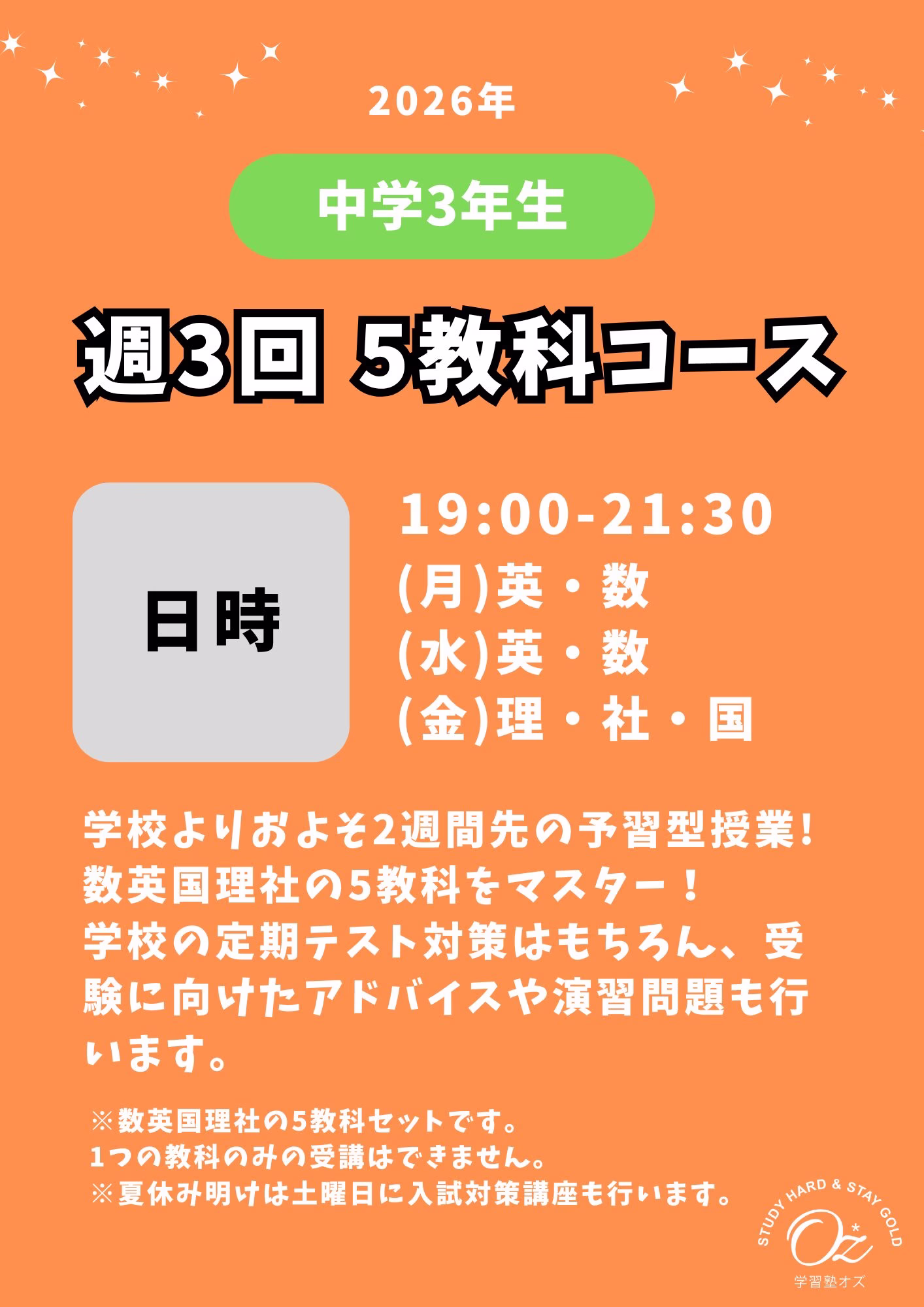 学習塾OZの授業は学校より1〜3週間先の内容を授業します。