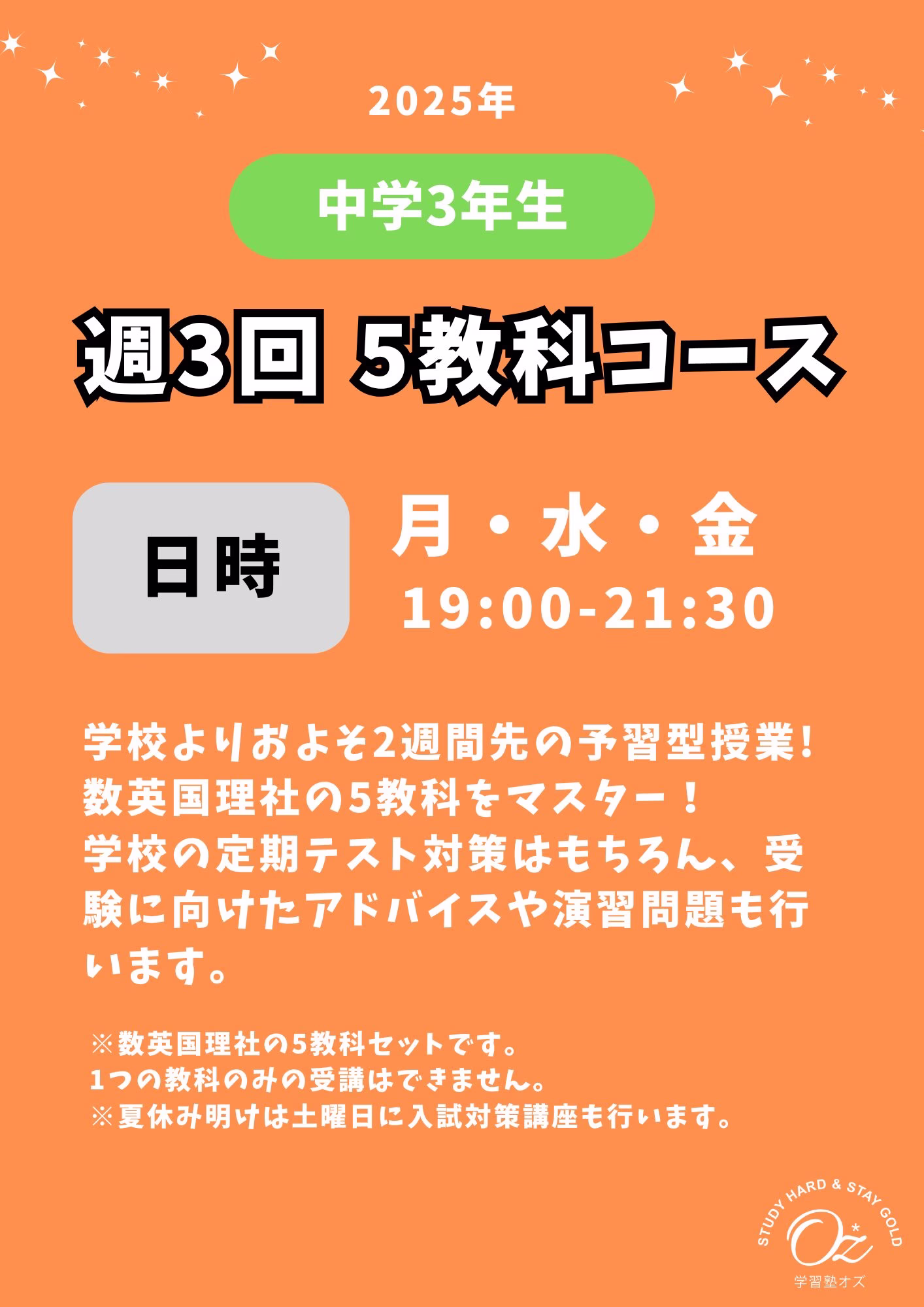 学習塾OZは多くの生徒にとって初めて訪れる入試という厳しい戦いに向けて最高の準備をするカリキュラムを用意しています。